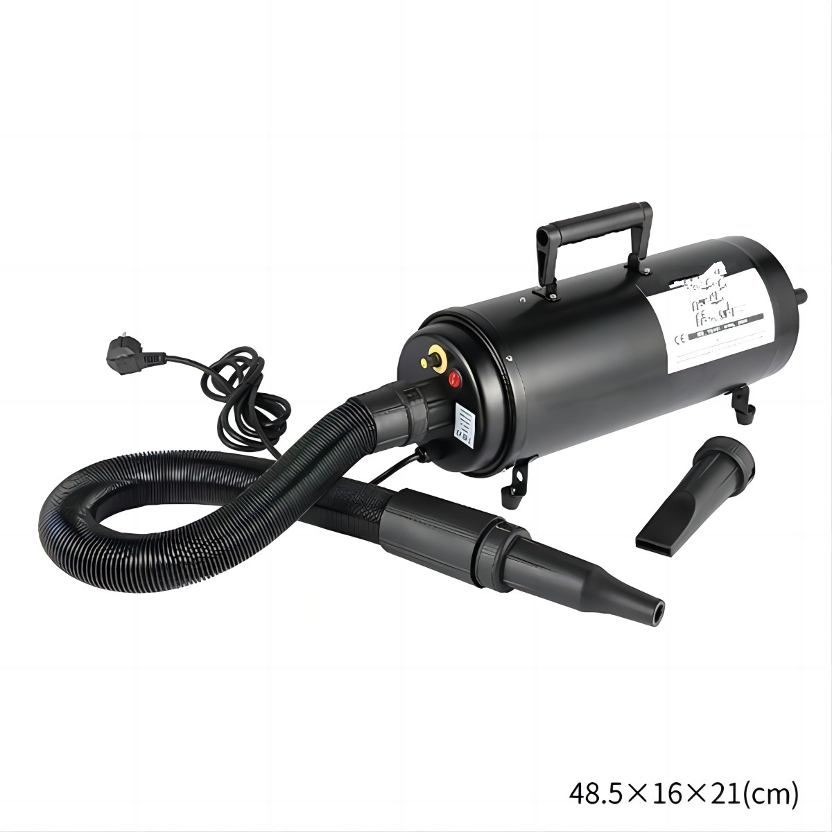 1. Doble motorer opererer samtidig for maksimal kraft, og leverer 2,3 ganger luftstrømmen til modeller med én motor, noe som gir ultrarask tørking av kjæledyrpels. Eksperimenter viser at ved å bruke vår Doble Motor Pet Water Blower, kan korthårede kjæledyr tørkes på omtrent 10 minutter, og langhårede kjæledyr på ikke mer enn tjue minutter!