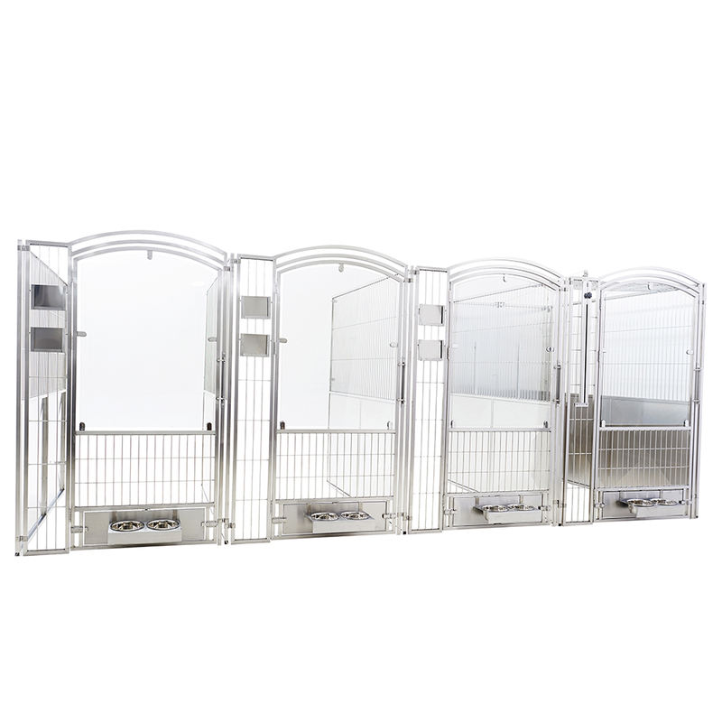Flerbruks dyrepensjonat og karantenebur bruker robust, sikkerhetsherdet glass for å sikre en eksepsjonelt lang levetid samtidig som den fullstendig forhindrer riper av dyr. Den helsveisede burkroppen har avrundede hjørner for enkel rengjøring og vedlikehold av hygiene. Burenheter kan plasseres rett foran eksisterende vinduer, noe som gjør dem spesielt egnet for valpesalg og adopsjonsområder.